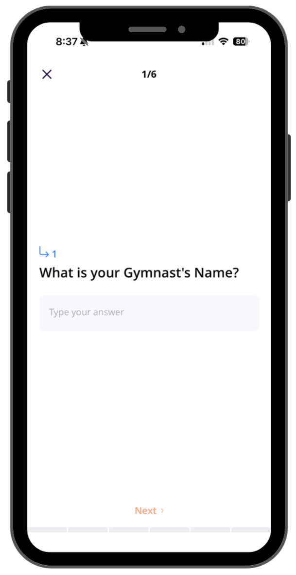 Before getting started, you’ll fill out a few quick forms inside the app and review the program guide so you know exactly how everything works. This ensures your gymnast is fully set up and ready to go.