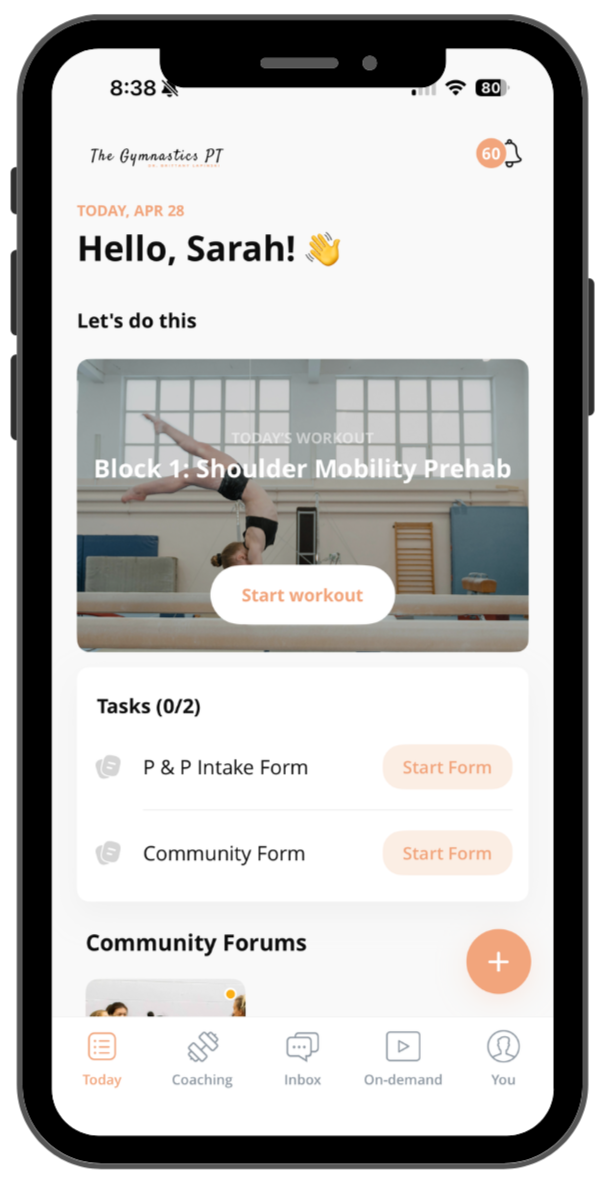 Once you're inside the app, take a minute to explore your home screen and see where everything lives. You can also introduce yourself inside the community forum to connect with other gymnasts.