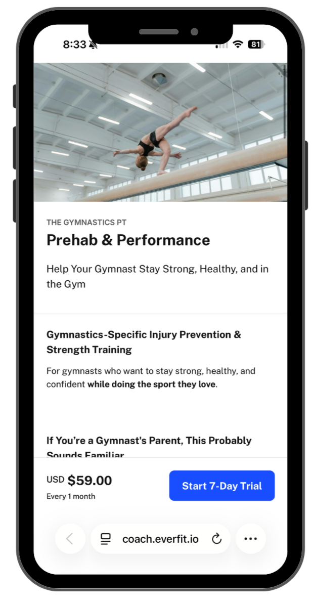 Get access to the program with a 7-day trial so your gymnast can explore the workouts, structure, and app before committing. No pressure, just a chance to see how it fits into their routine!